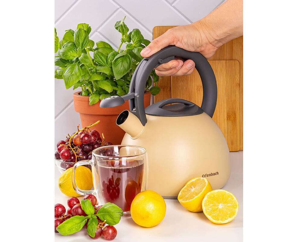 Равномерно распределяет тепло и сохраняет его дольше, а свисток сообщит вам, когда вода закипит, экономя энергию