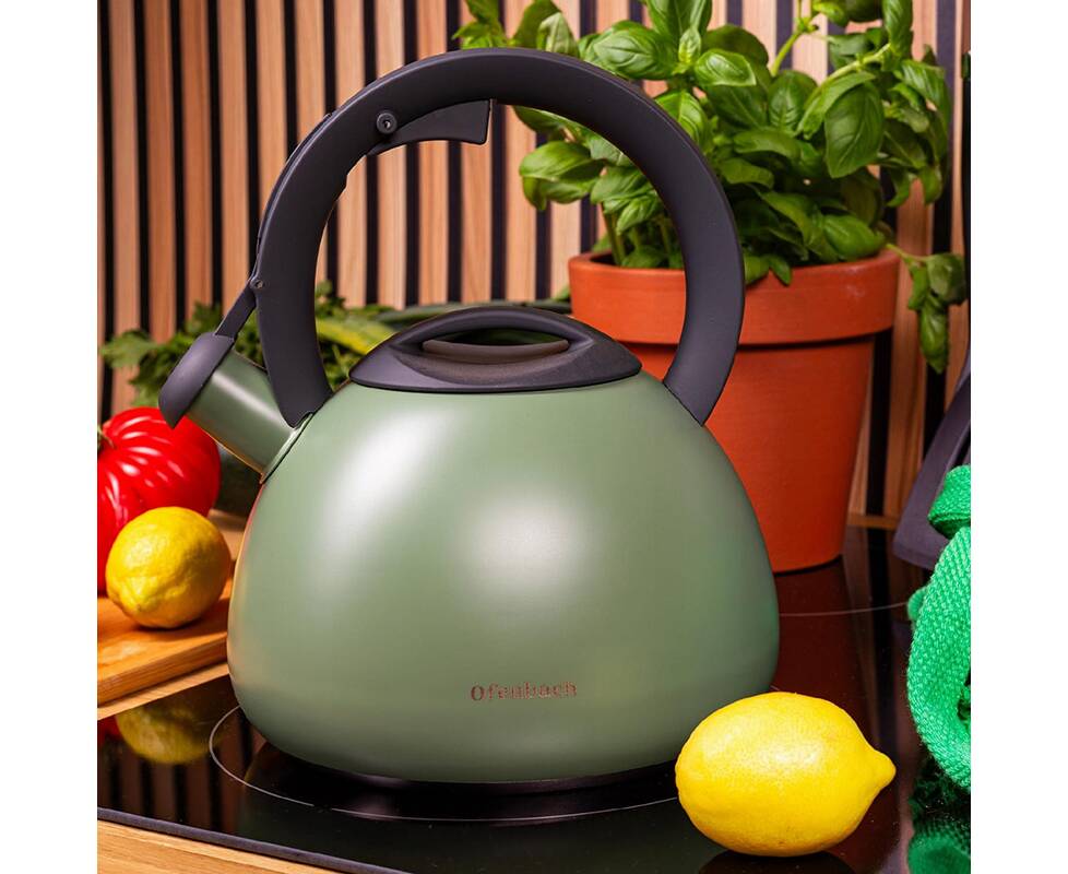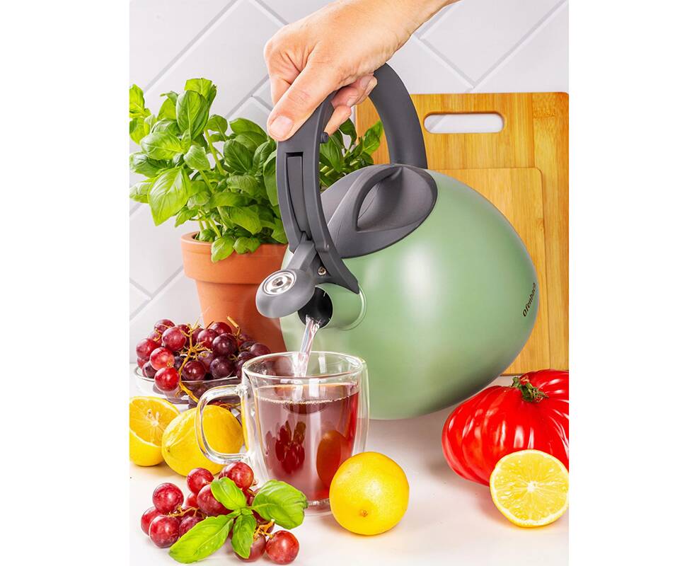 Равномерно распределяет тепло и сохраняет его дольше, а свисток сообщит вам, когда вода закипит, экономя энергию