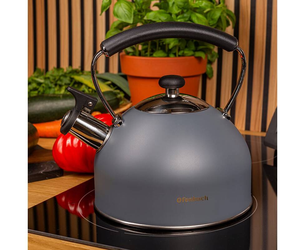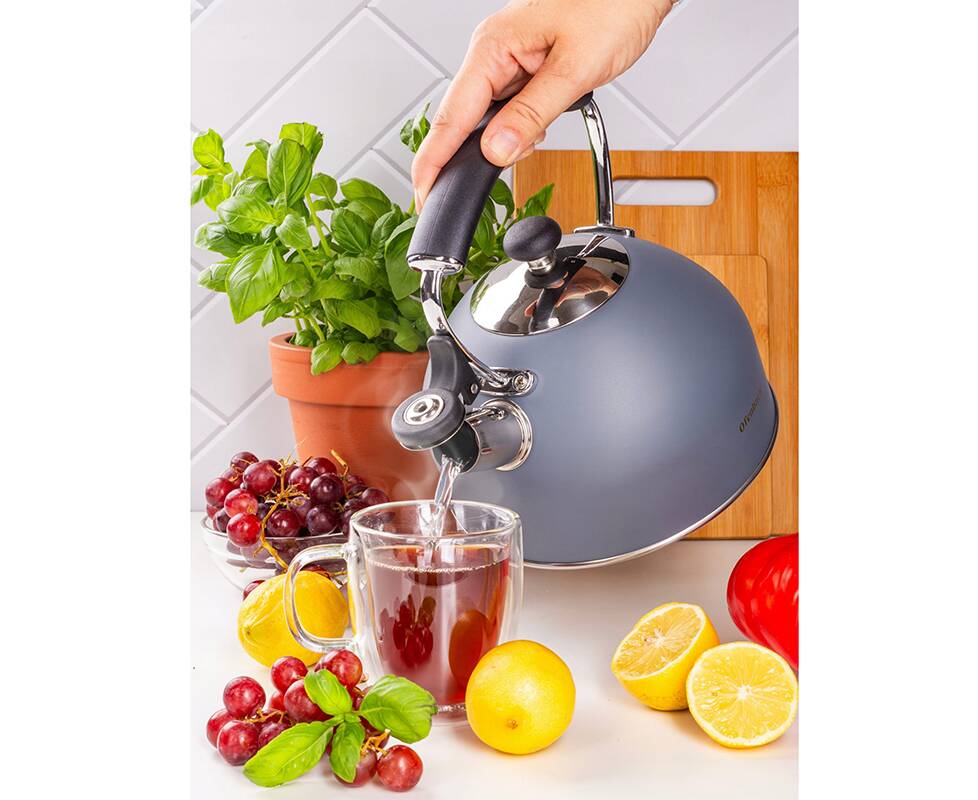 Равномерно распределяет тепло и сохраняет его дольше, а свисток сообщит вам, когда вода закипит, экономя энергию