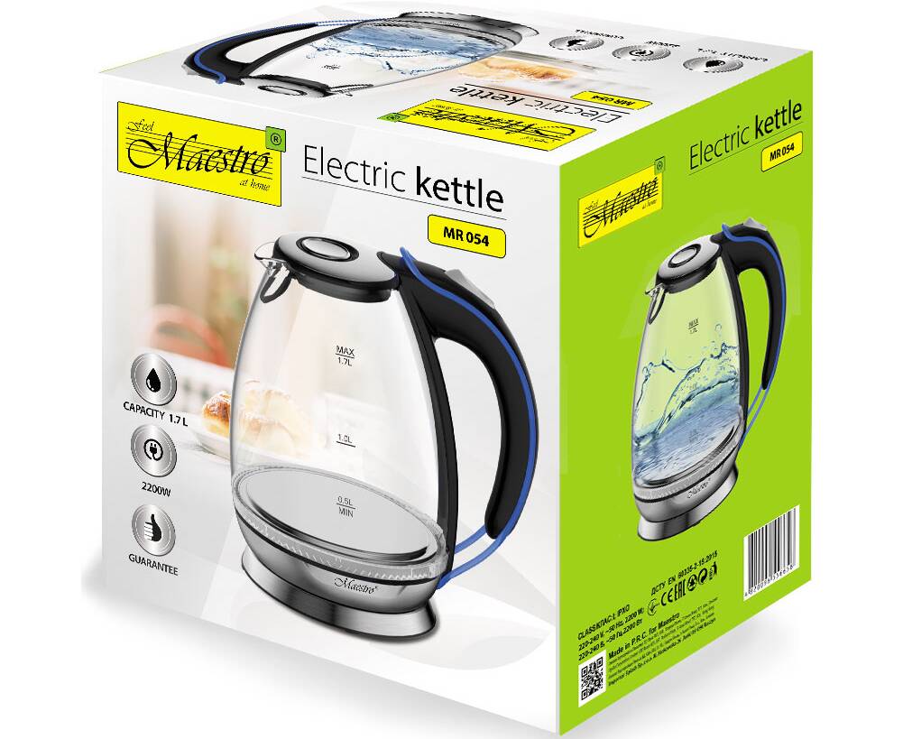 Чайник электрический 1,7 л 2000 Вт Maestro стекло (MR054)
