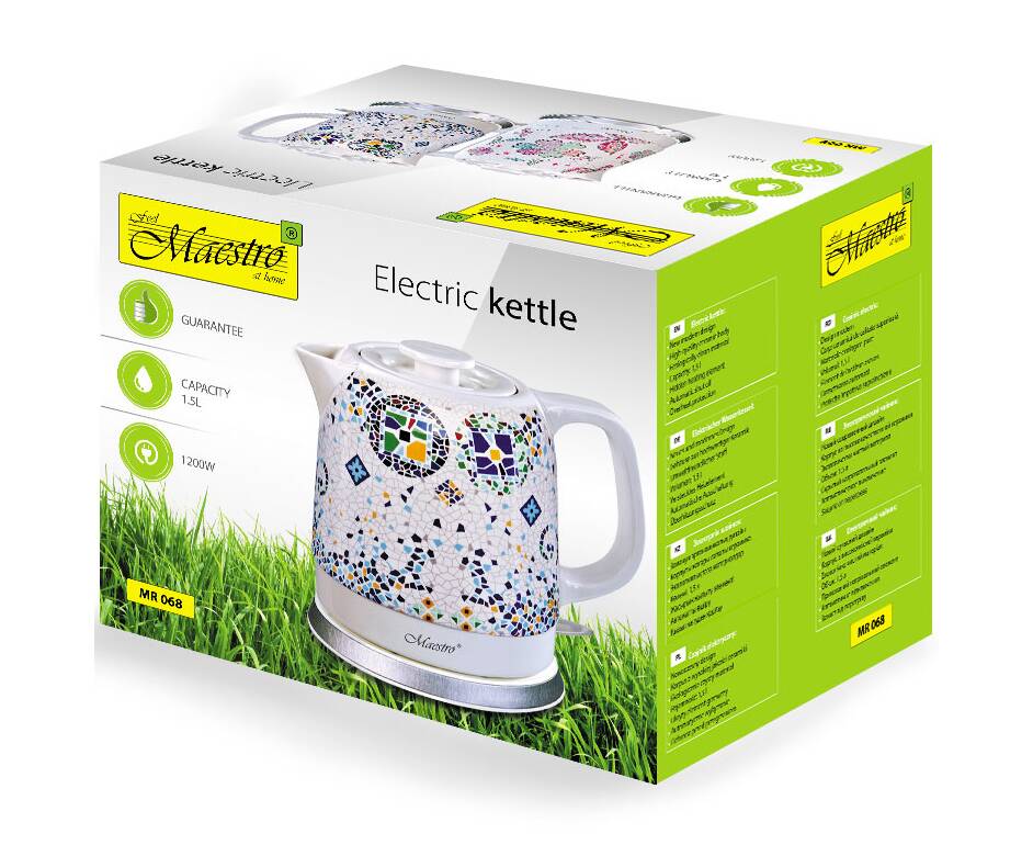 Чайник электрический керамический 1,5 л Maestro (MR068-FLOWERS)