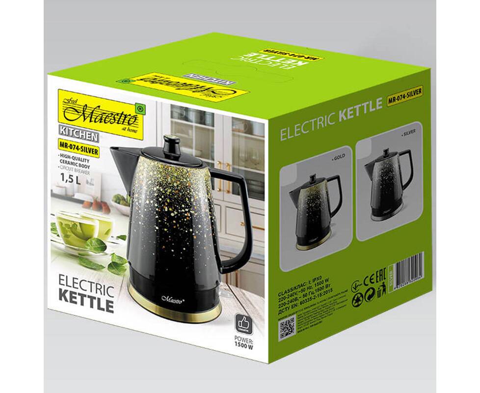 Чайник электрический керамический 1,5 л Maestro (MR074-SILVER)