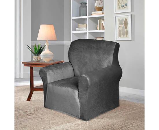 Чехол на кресло темно-серый велюр Love you