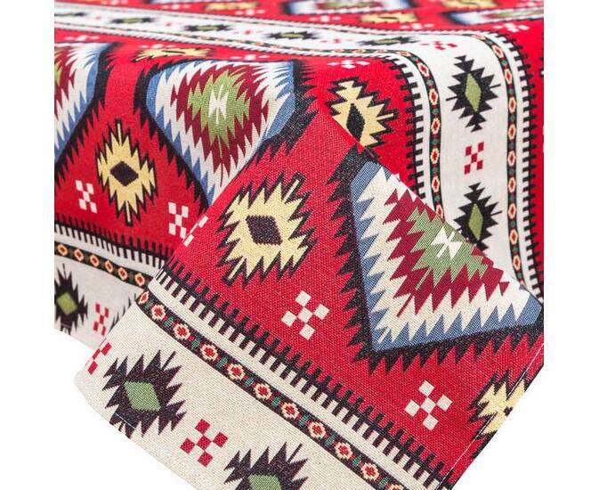Скатертина гобеленова Карпатські мотиви (червона) 137х137 (JAIMA035-137) LiMaSo