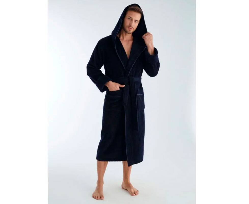 Халат мужской махровый NUSA ns 1335 lacivert (m) с капюшоном