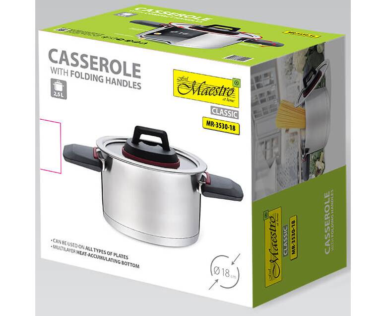 Кастрюля 18 см 2,3 л.со складными ручками Maestro (MR3530-18)