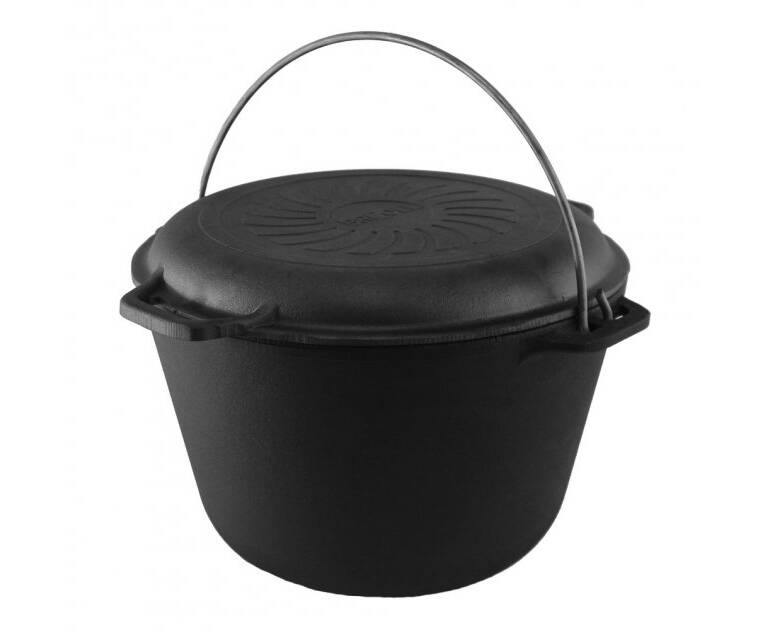 Казан туристический чугунный с чугунной крышкой - сковородой 8 л Туризм Brizoll (KT08-2)