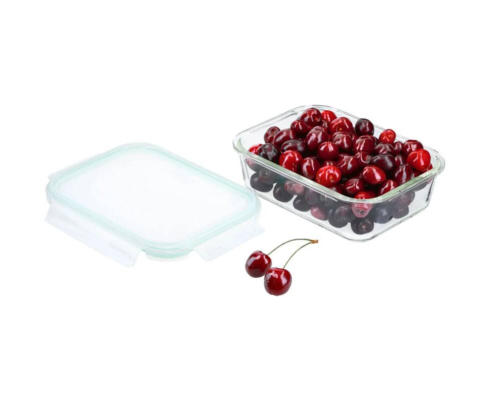 Материал - боросиликатное стекло; крышка: полипропилен, силикон
