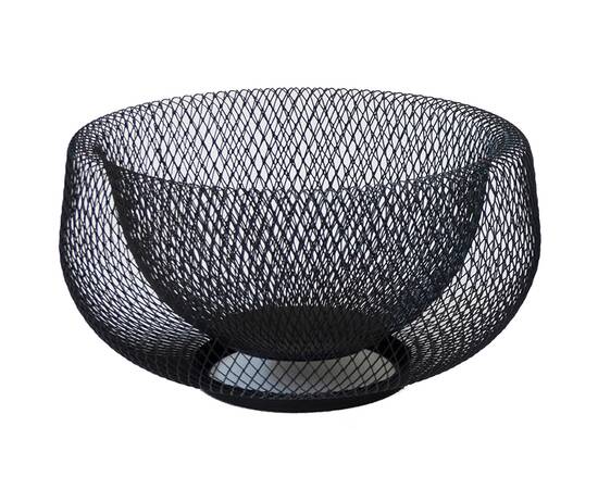 Изготовлена из металла методом мелкоячеистого плетения с эффектом "корзина в корзине", что придает этой фруктовнице необычный вид