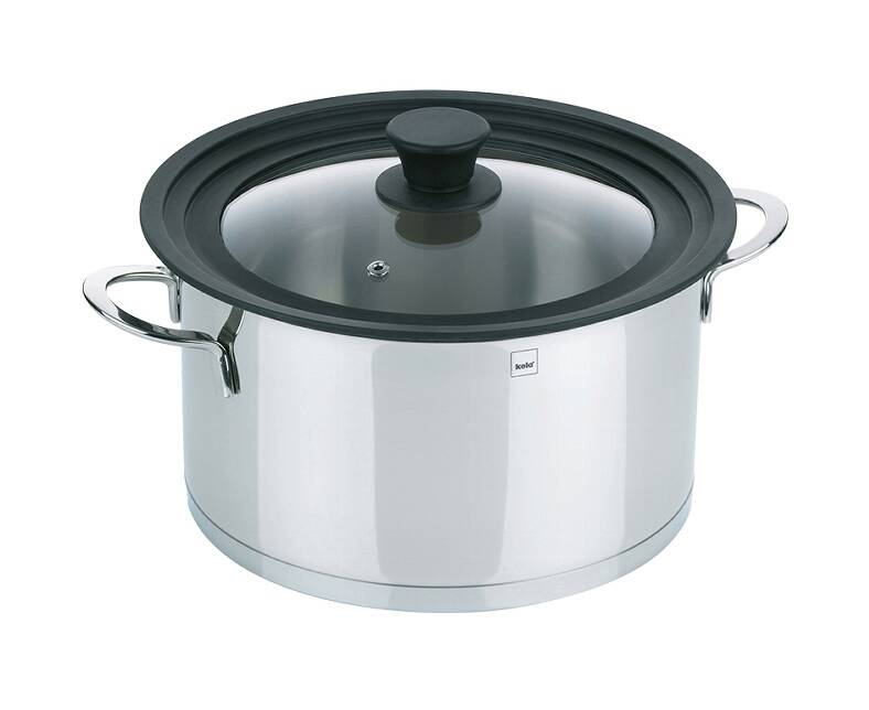 Практичная стеклянная крышка с силиконовым ободком Kela Concetta адаптируется к разным размерам кастрюль на разных уровнях