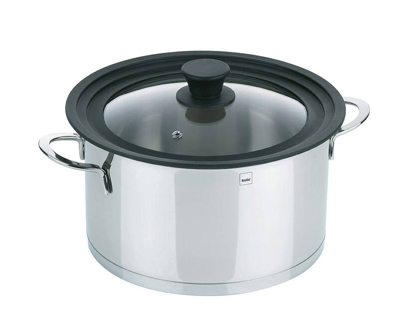 Практичная стеклянная крышка с силиконовым ободком Kela Concetta адаптируется к разным размерам кастрюль на разных уровнях