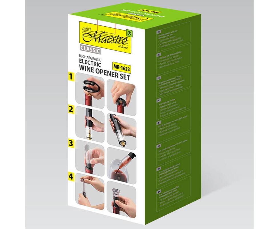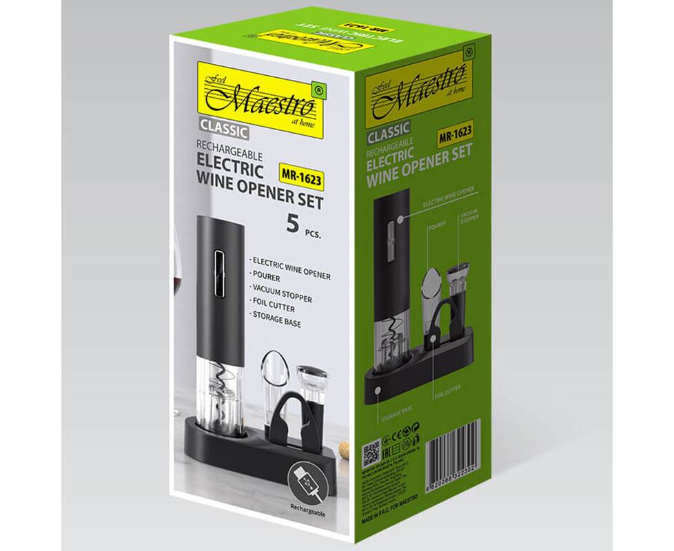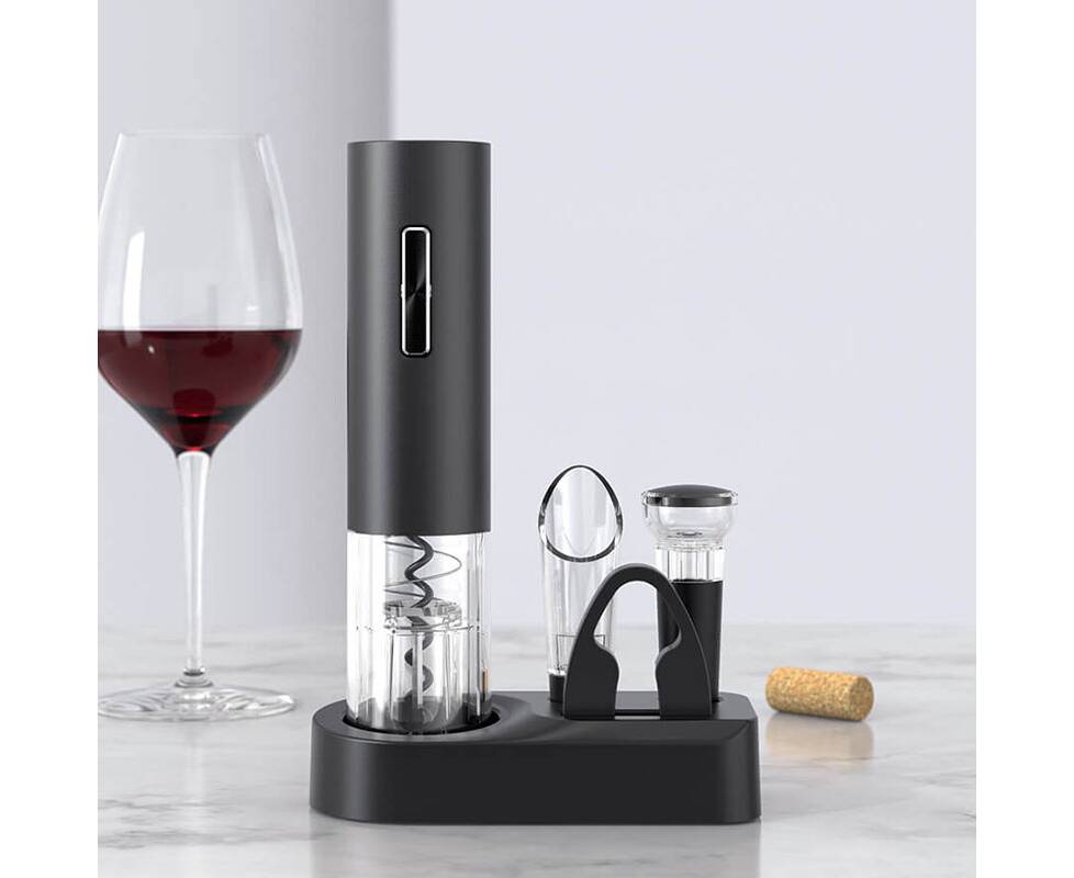 Состав: автоматический штопор, дозатор-аэратор, вакуматор, нож для фольги, подставка для хранения