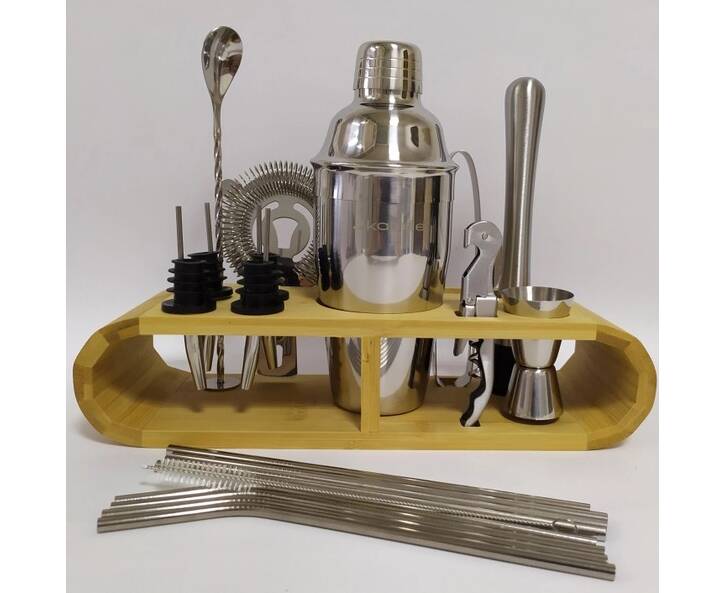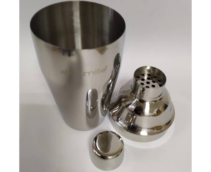 1 Шейкер на 550 милилитров, который состоит из 3-х частей: шейкерного стакана, крышки-колпачка с ситом, с помощью которого бармен перемешивает и сбалтывает коктейль