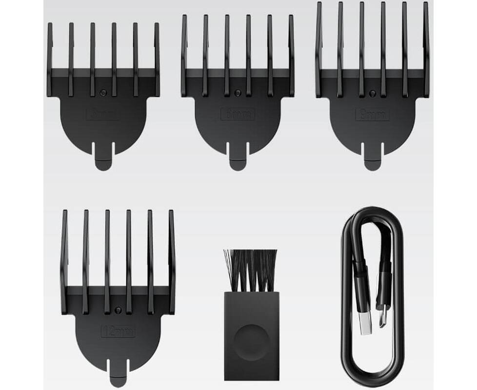 В комплекте: USB-кабель, расческа, щетка, подставка, бутылка с маслом, ограничительная расческа