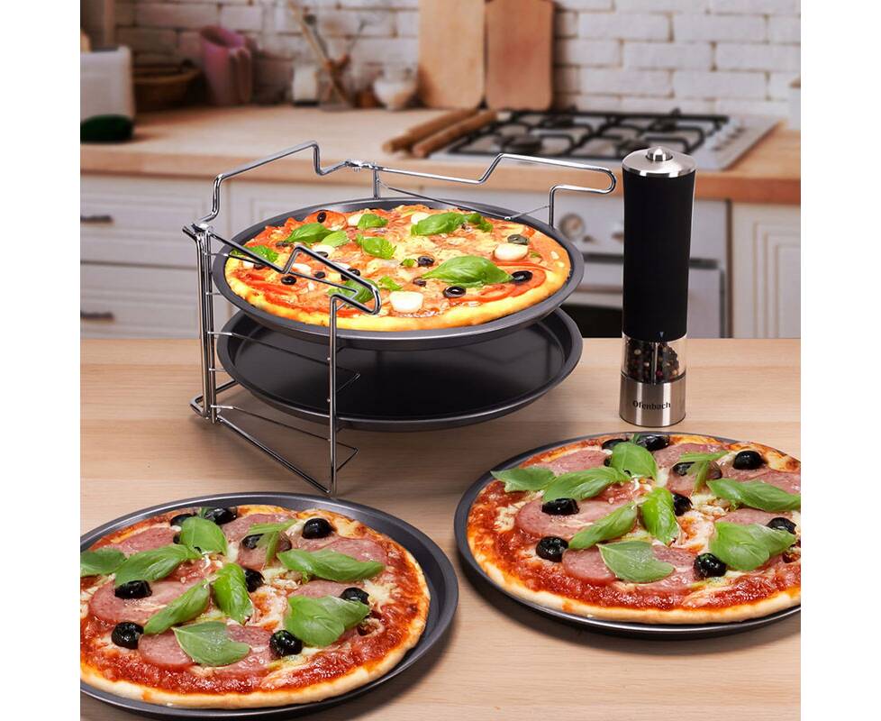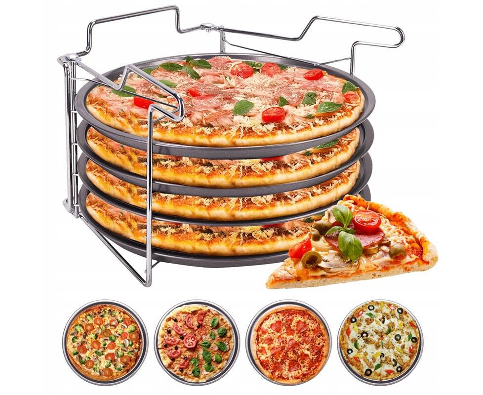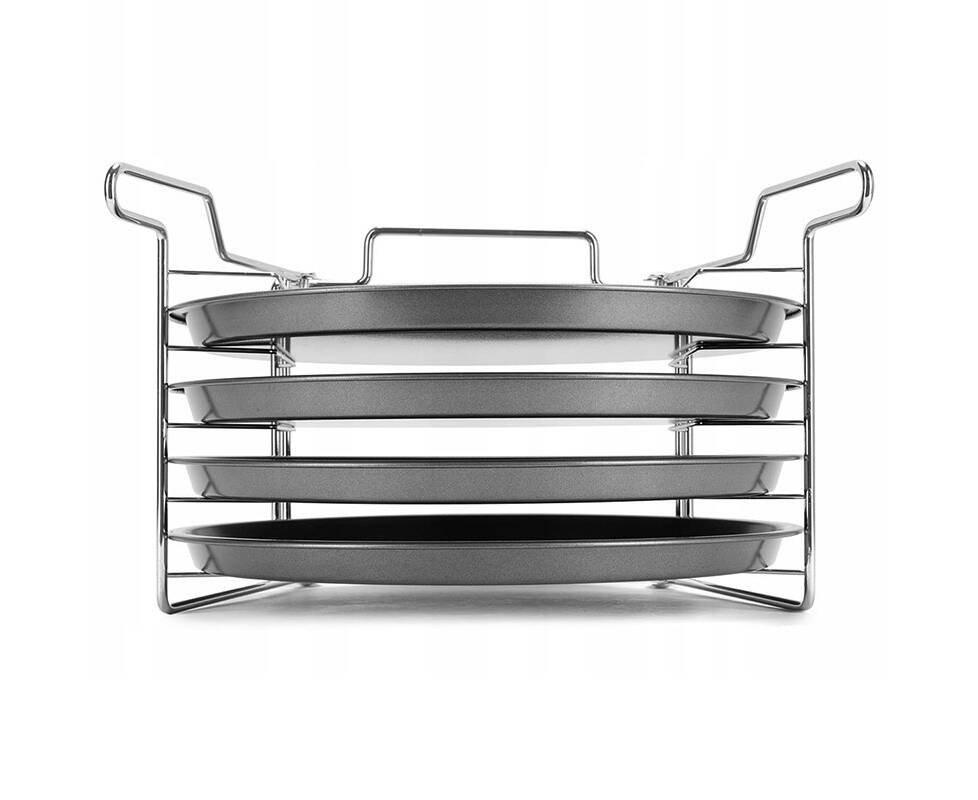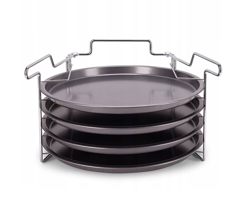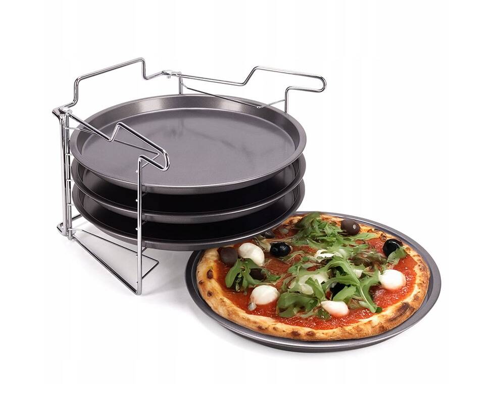 Этот набор 4-в-1 позволяет выпекать до 4 пицц одновременно, а также готовить тарт-фламбе, торты и замороженные блюда