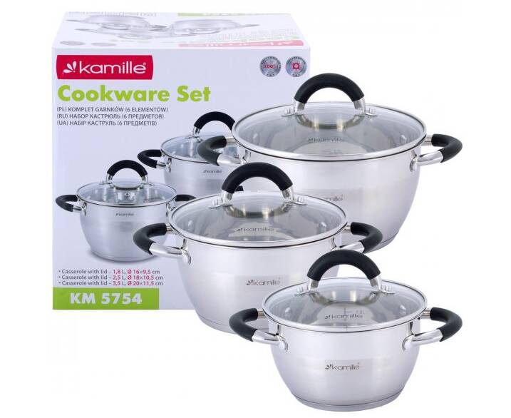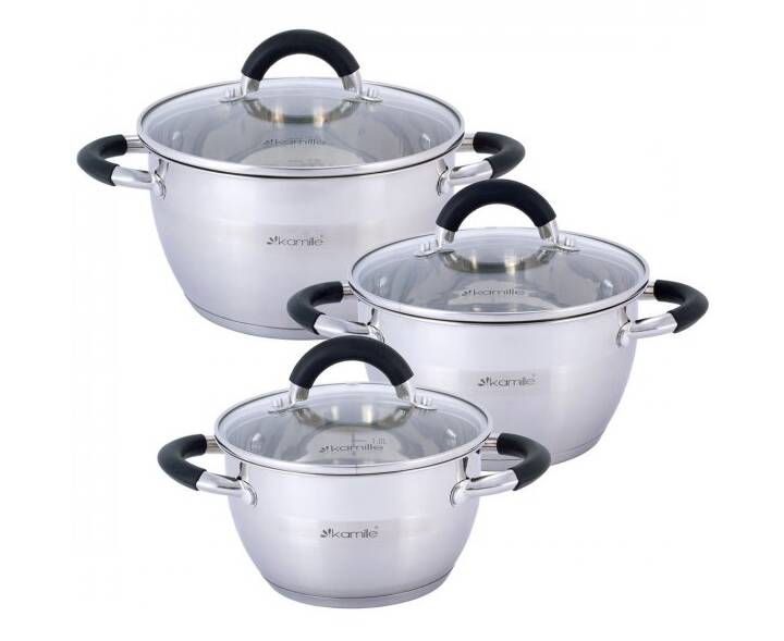 Набор кастрюль 6 предмета (1.8л, 2.5л, 3.5л) Kamille (5754)