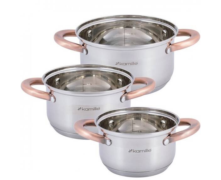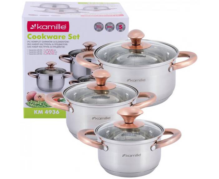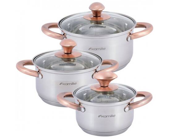 Набор кастрюль 6 предметов (1л, 1,5л, 2л) Kamille (4936)