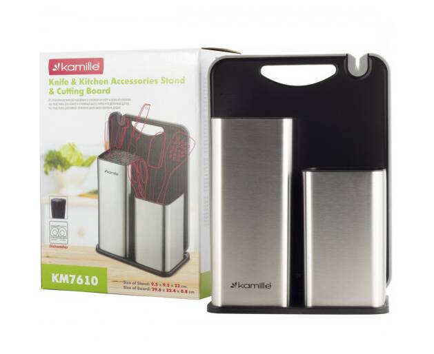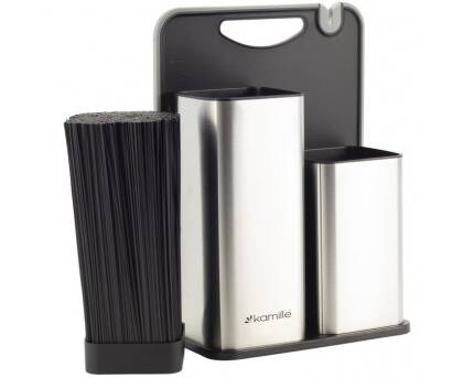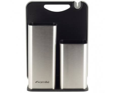 Набор: подставка для ножей 21,2x12,4x22 см с доской разделочной 29,6x22,4x0,8cm Kamille (7610)