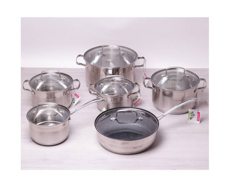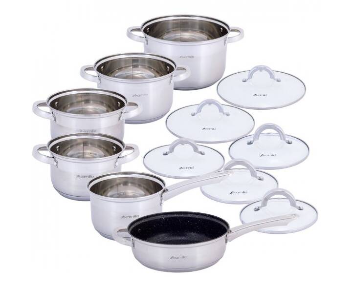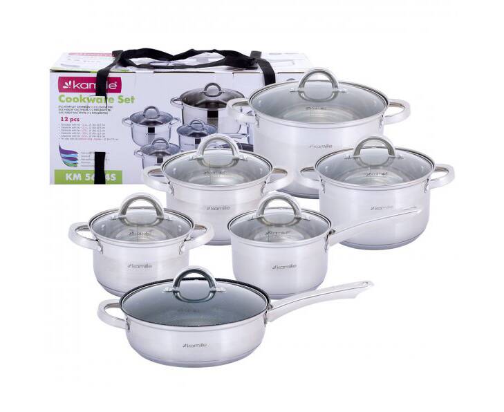 Набор посуды 12 пр. (кастрюли 1.8л,2.5л,3.8л,5.8л; ковш 1.8л; сковорода О24 см ) Kamille (5634S)