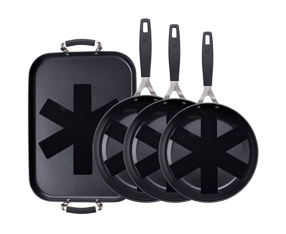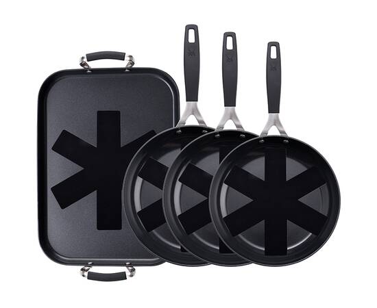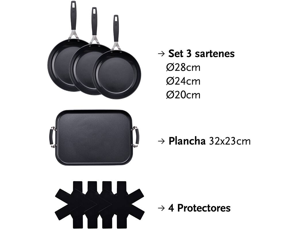 Комплектация: сковорода 20/24/28 см; сковорода-гриль 32х23 см; 4 защитных протектора