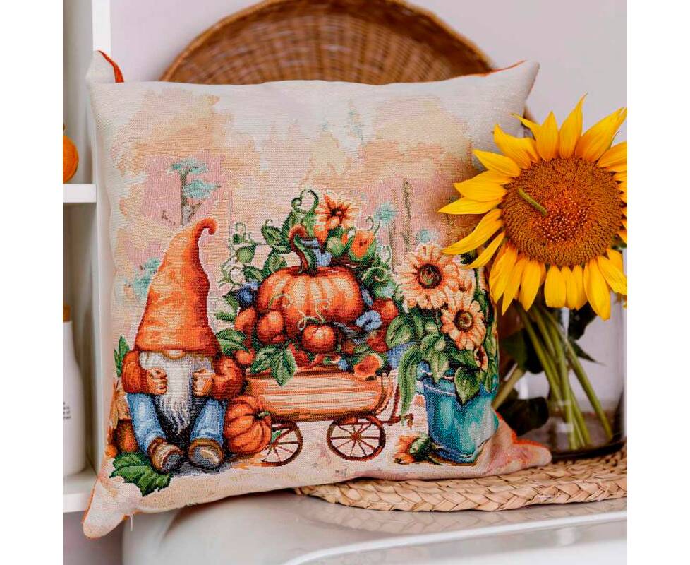 Наволочка 45х45 гобеленовая Гарбузові гноми з возиком Прованс (036216)