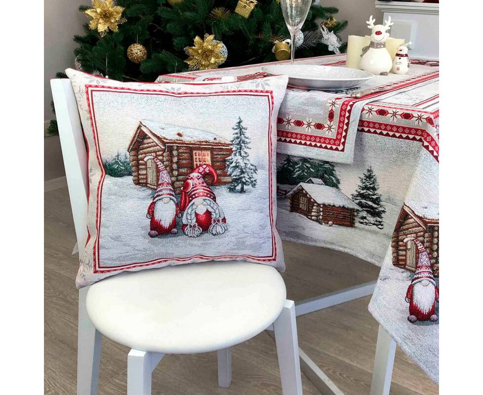 Наволочка 45х45 Snowfall Пара гномів біля хатинки Прованс (023806)