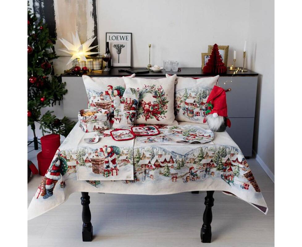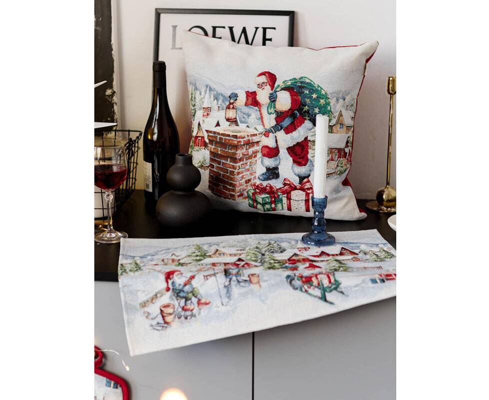Наволочка декоративная 45х45 гобеленовая с велюром Снігова зима Санта Прованс (037193)