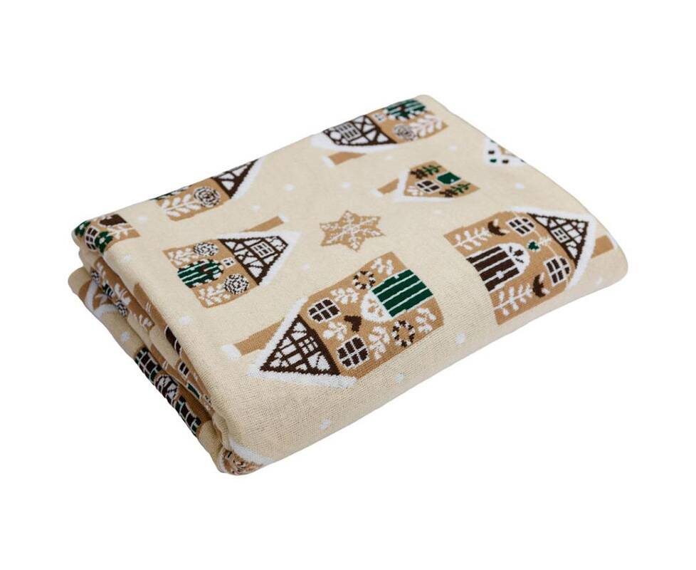 Плед 90х130 вязаный Імбирні будиночки Беж Прованс (037811)
