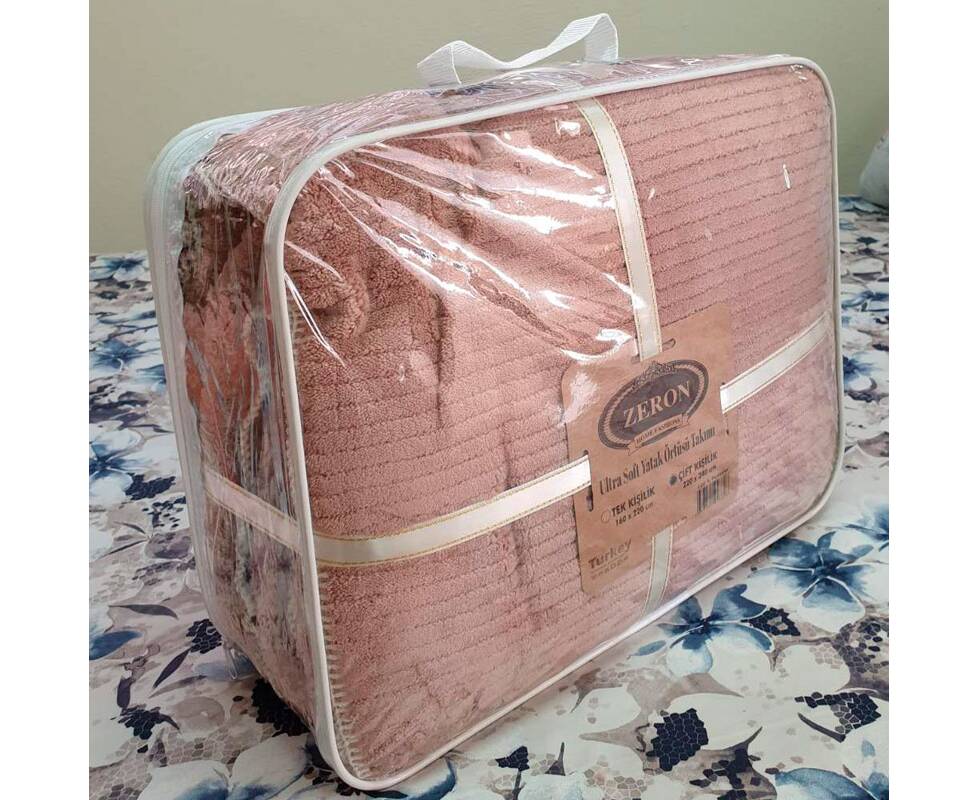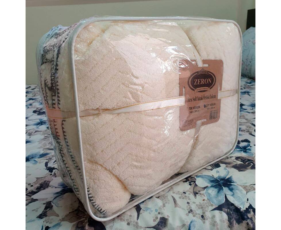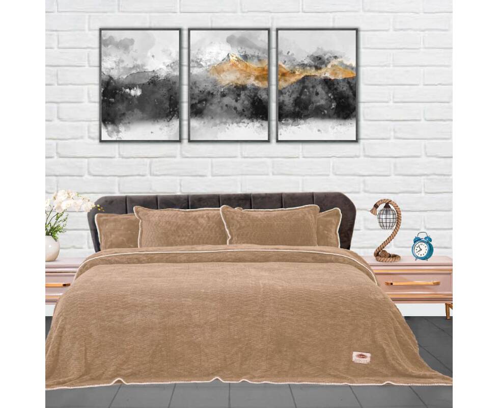 Плед-покрывало жаккардовое Welsoft 220х240 с наволочками 50х70 косичка бежевый Zeron (19568)