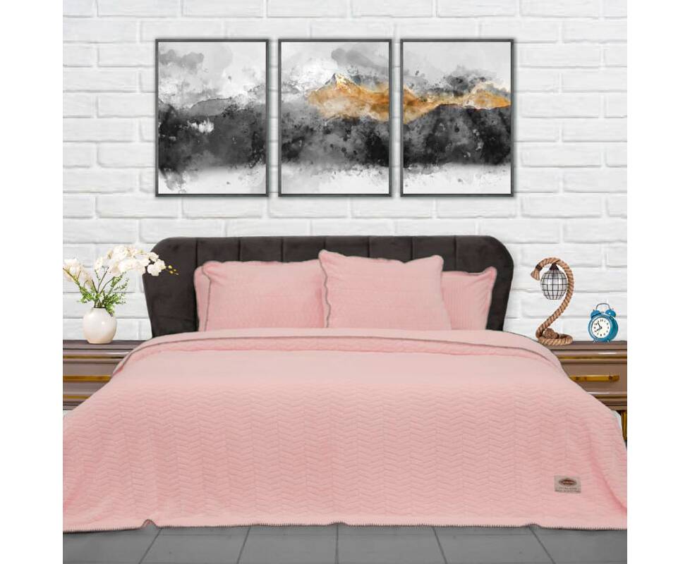 Плед-покрывало жаккардовое Welsoft 220х240 с наволочками 50х70 косичка пудровый Zeron (19569)