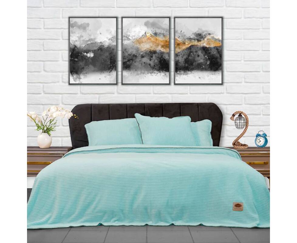 Плед-покрывало жаккардовое Welsoft 220х240 с наволочками 50х70 полоска ментоловый Zeron (19578)