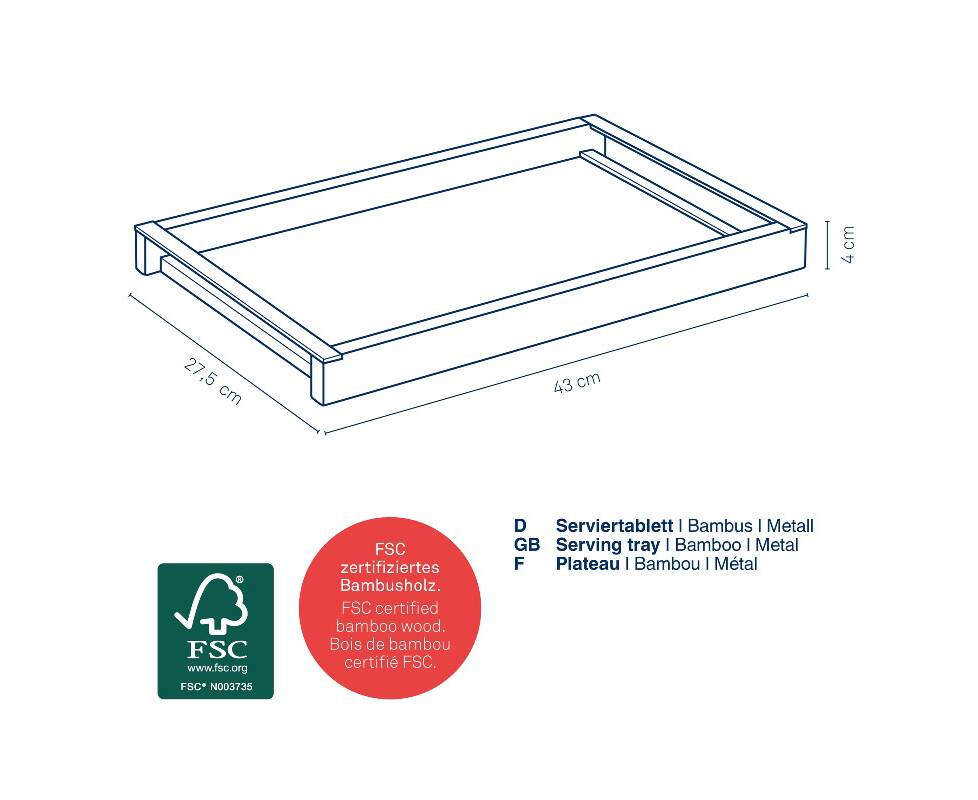 Поднос сервировочный KELA Kiril бамбуковий, 43x27.5х4 см (12598)