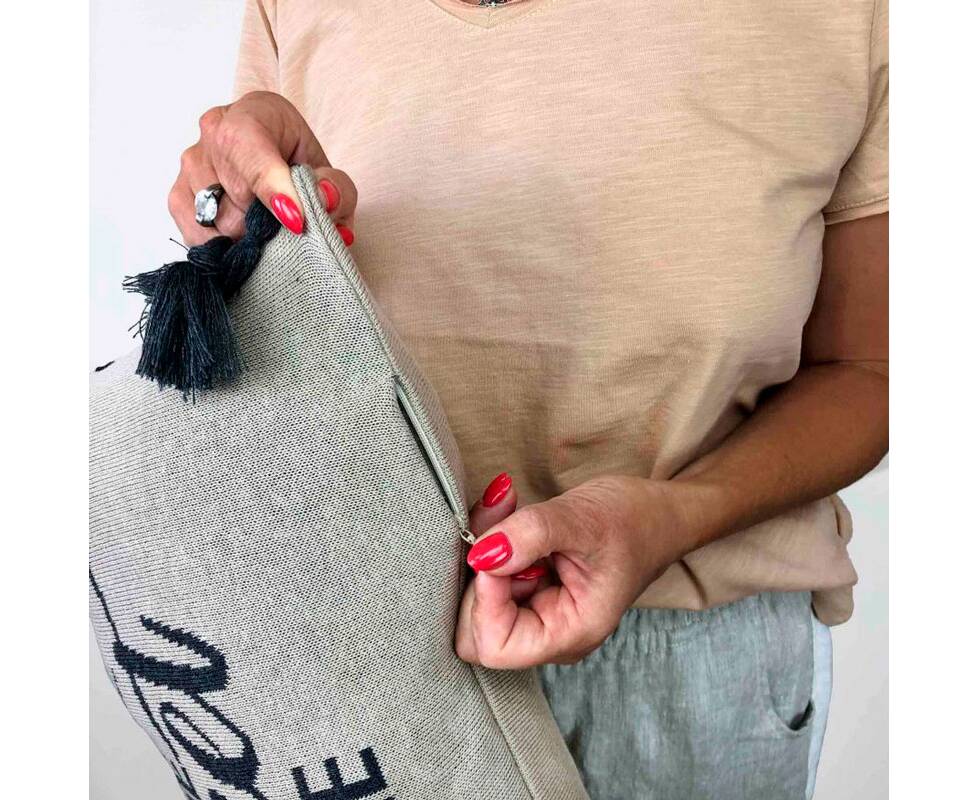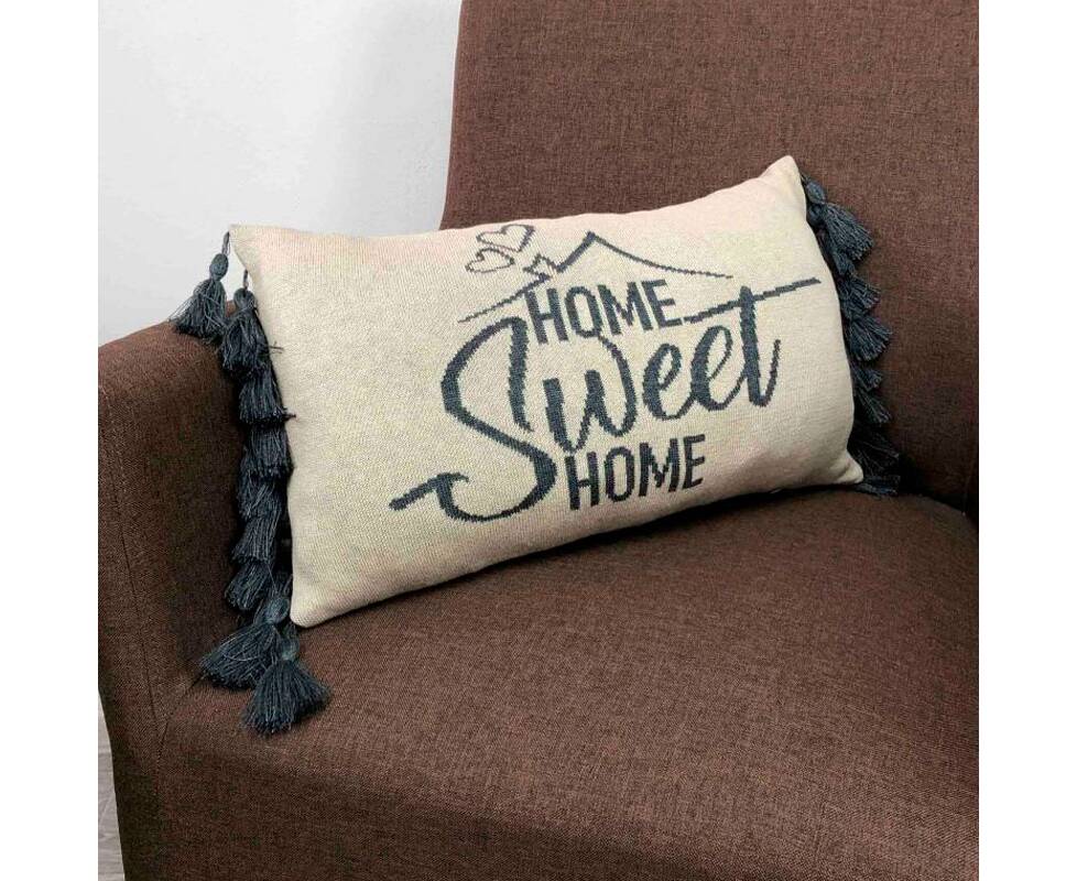 Подушка вязаная 30х45 Home, sweet home Сіра (16 кисточек) Прованс (023435)