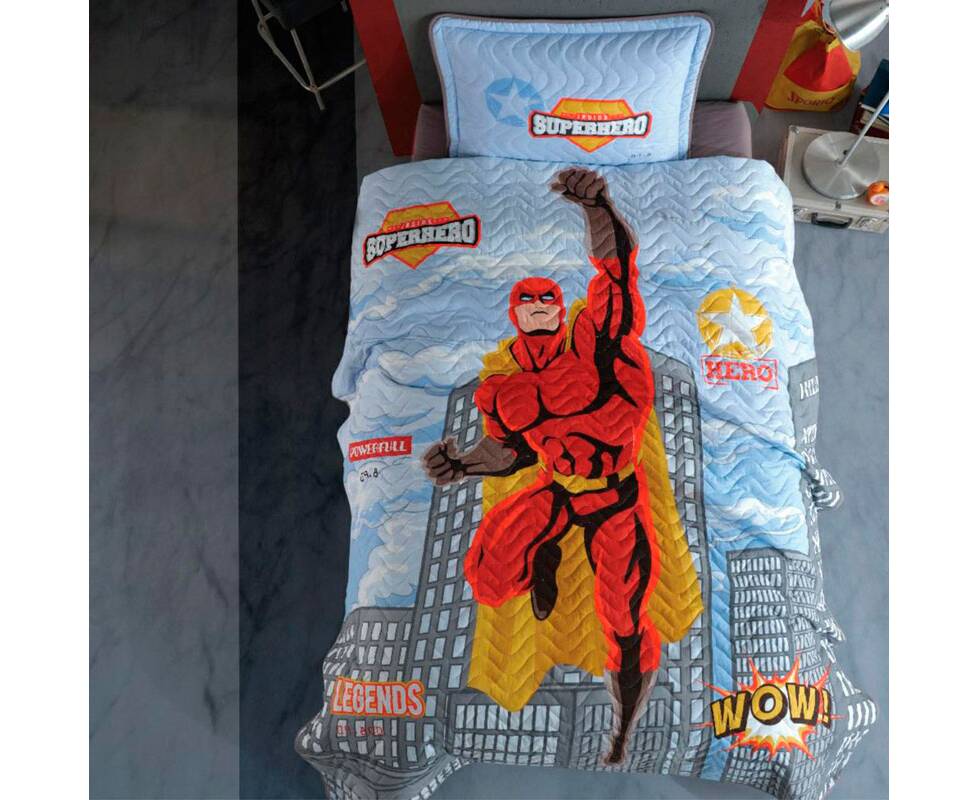 Покрывало детское/подростковое стеганое 180x240 с наволочкой 50х70 Superhero Clasy (18040)