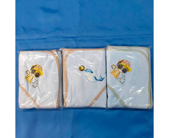 Рушник дитячий для купання велюровий з капюшоном 80x80 світло-блакитний Zeron (18152)
