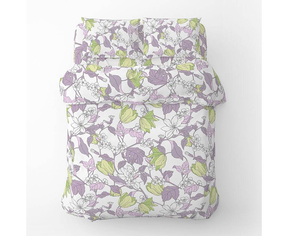 Полуторный комплект Home Line Бязь 145х214 (1 нав 50х70) ВЕСНЯНИЙ ВЕЧІР сиренево-зеленый (174438)