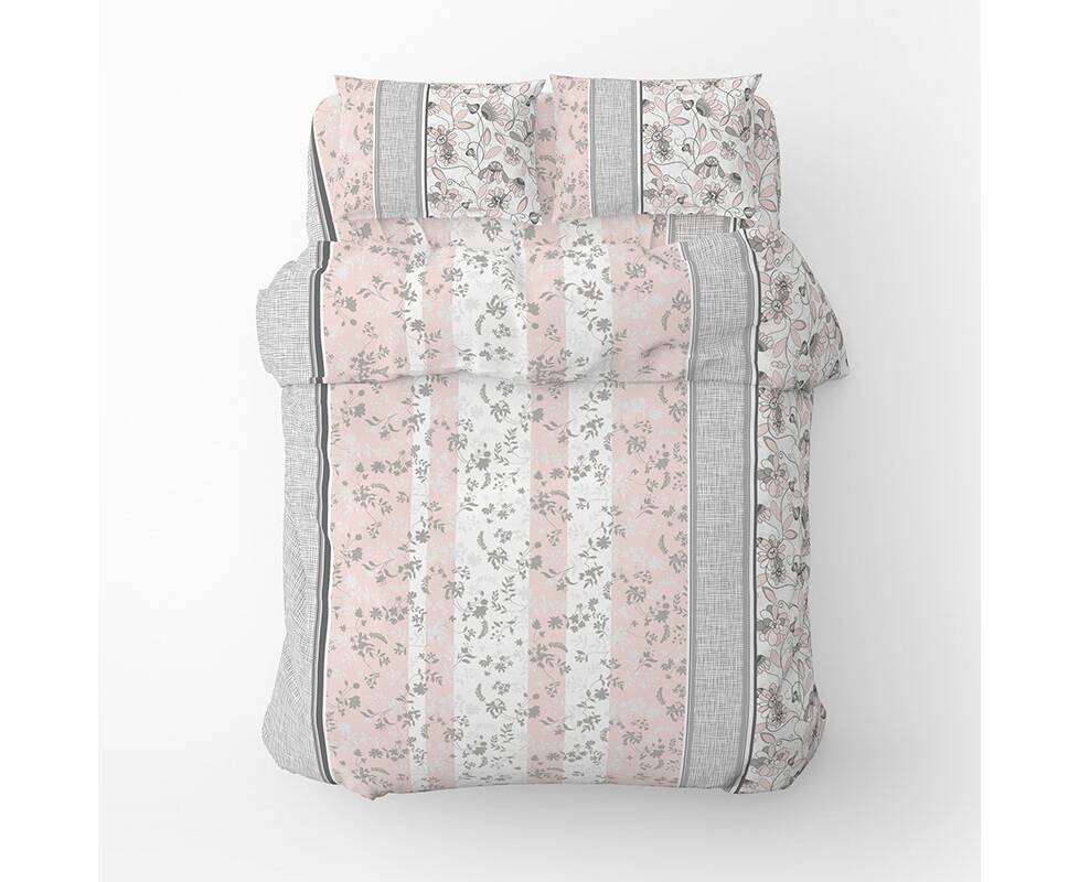 Полуторный комплект Home Line Бязь 145х214 (1 нав 50х70) ЗАТИШОК серо-розовый (173516)