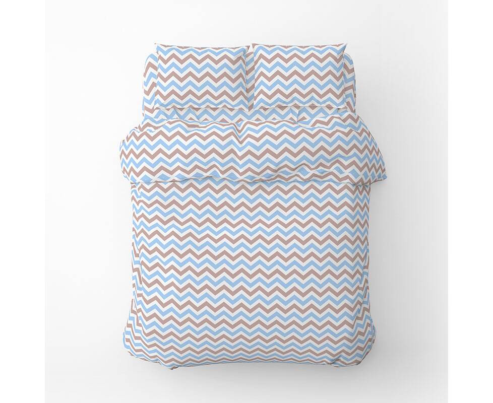 Полуторный комплект Home Line Бязь 145х214 (1 нав 50х70) ЗІГ ЗАГ голубо-коричневый (175852)