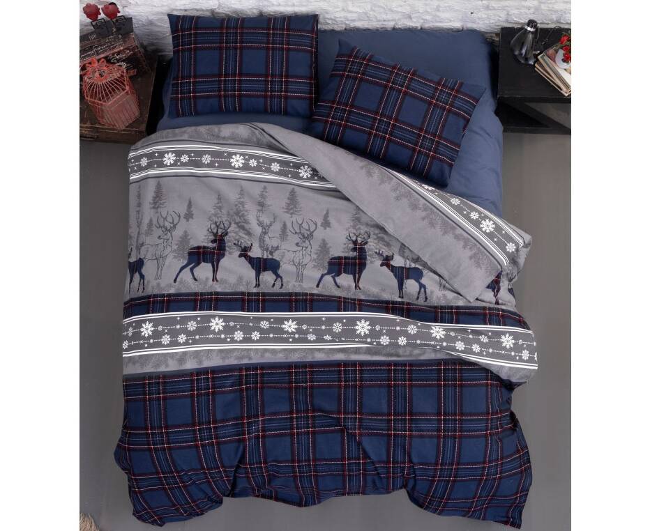 Постельное белье First Сhoice фланель 200х220 happyness navi blue