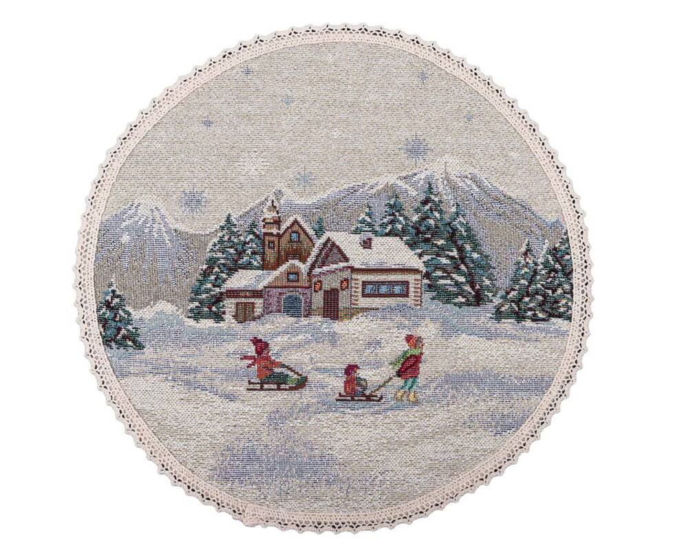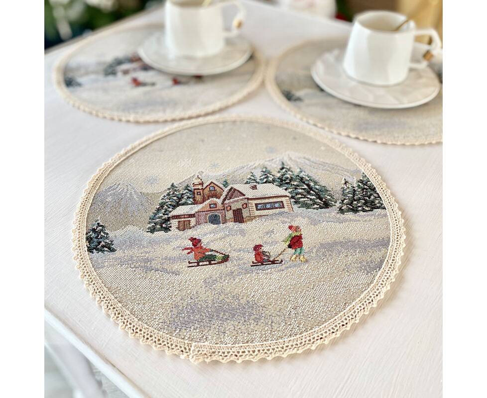 Серветка-підкладка під тарілку з мереживом Зимова пригода O25 LiMaSo (ROUND1004M-25D)