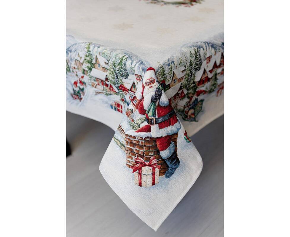 Скатерть 135х300 гобеленовая с велюром Снігова зима Прованс (037476)