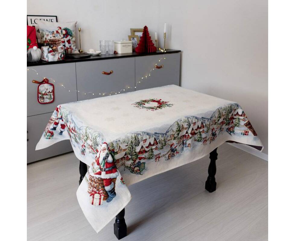 Скатерть 135х350 гобеленовая с велюром Снігова зима Прованс (037477)