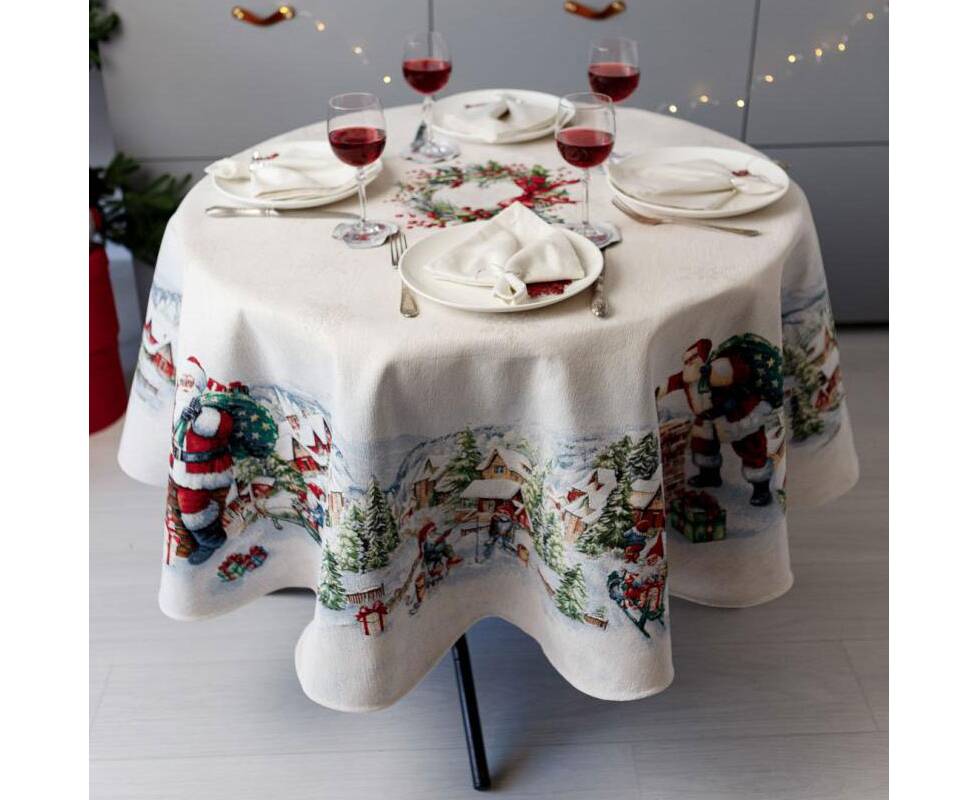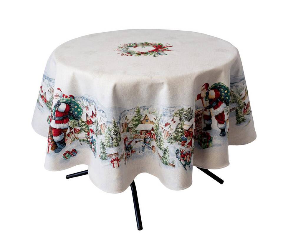 Скатерть круглая круглая D-180 гобеленовая с велюром Снігова зима c Прованс (037482)