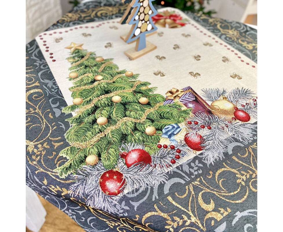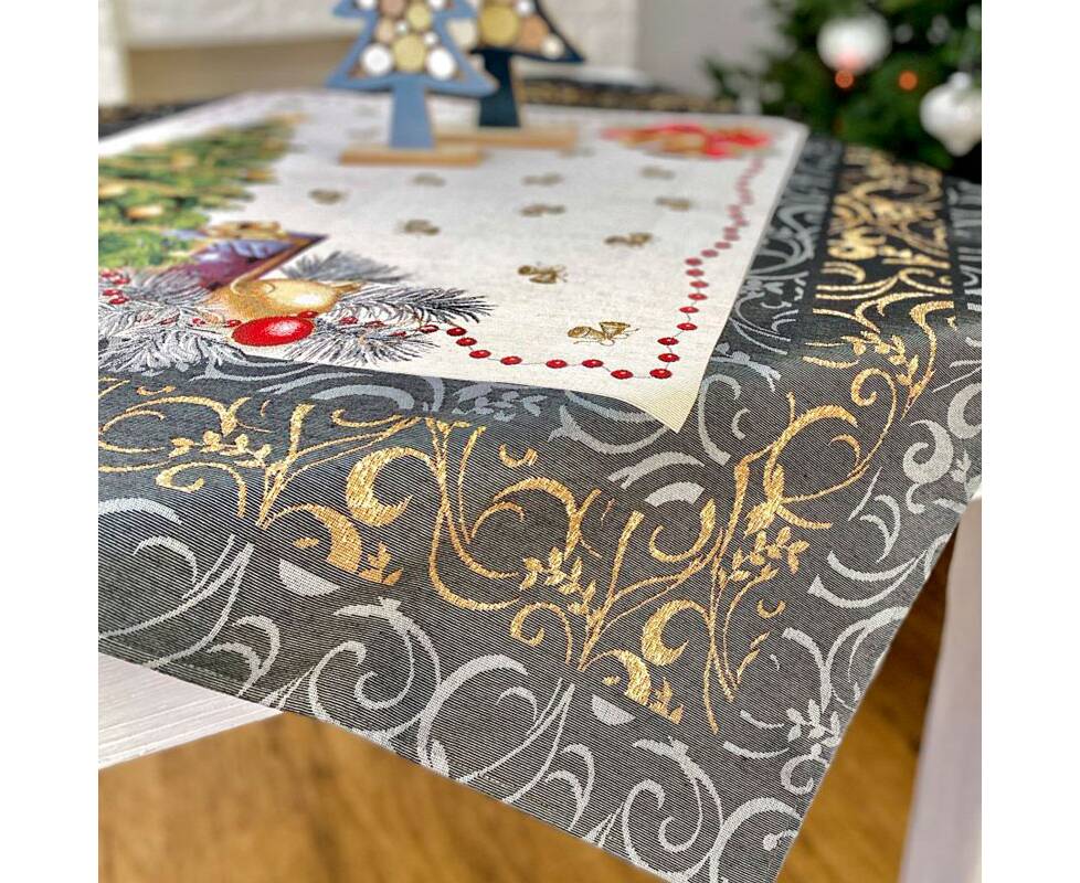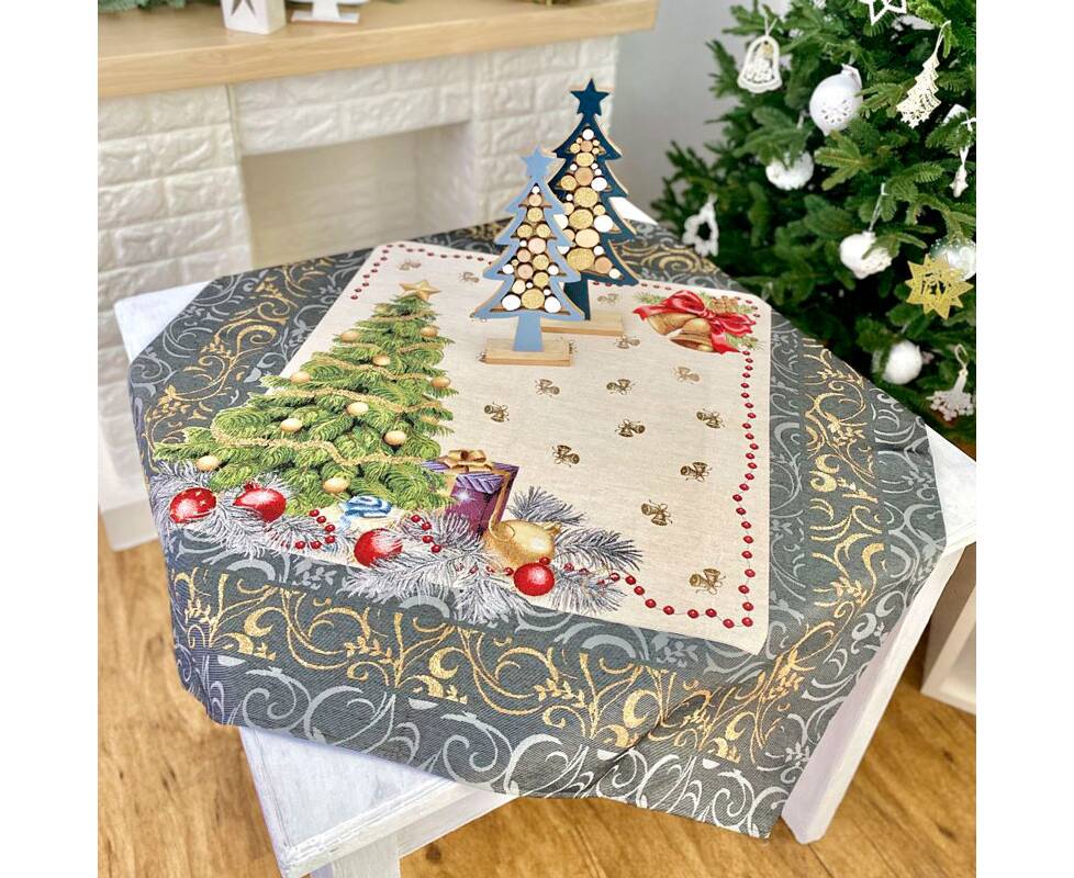 Скатертина гобеленова Новорічний сюрприз 97х100 LiMaSo (RUNNER536G-100 (без люрексу))