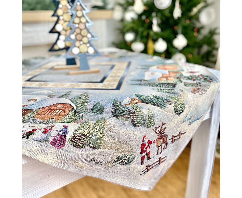Скатертина гобеленова Різдво в Карпатах 97х100 LiMaSo (RUNNER723-100 (золотий люрекс))