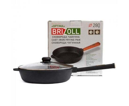Сковорода чугунная со стеклянной крышкой 280х69,5 мм с ручкой Optima-Black Brizoll (O2860-P1-C)