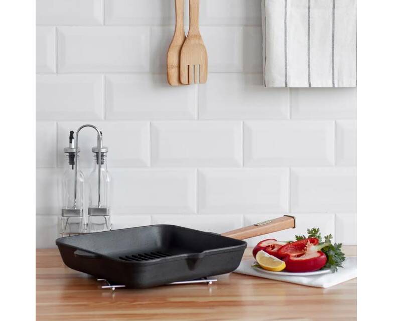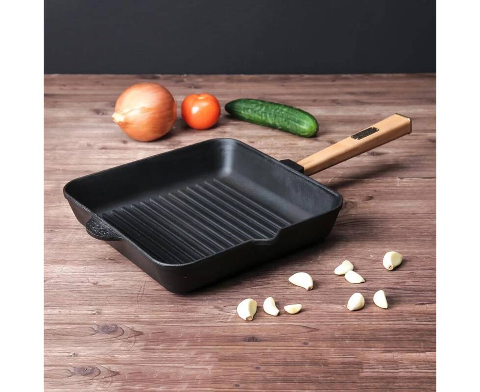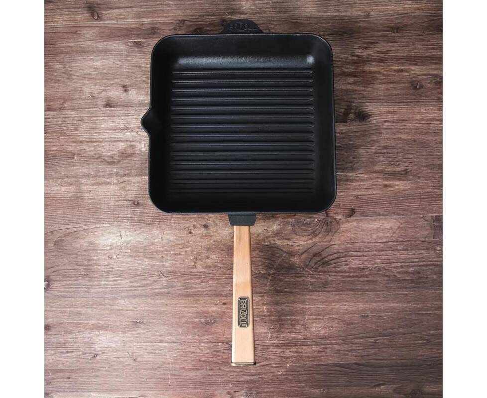 Сковорода чугунная квадратная гриль 260х260х57,5 мм с ручкой Optima Brizoll (O262650G-P)
