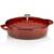 Красная кастрюля изготовлена из чугуна и покрыта эмалью бежевого цвета внутри, имеет глянцевое покрытие