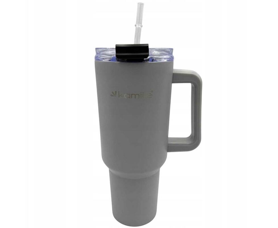Термокружка 1200 мл из нержавеющей стали с трубочкой (серый) Kamille (2173)