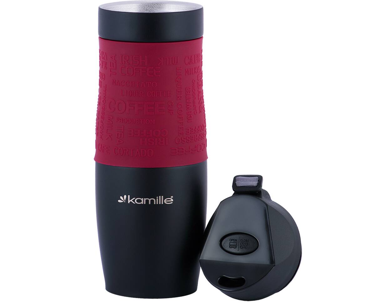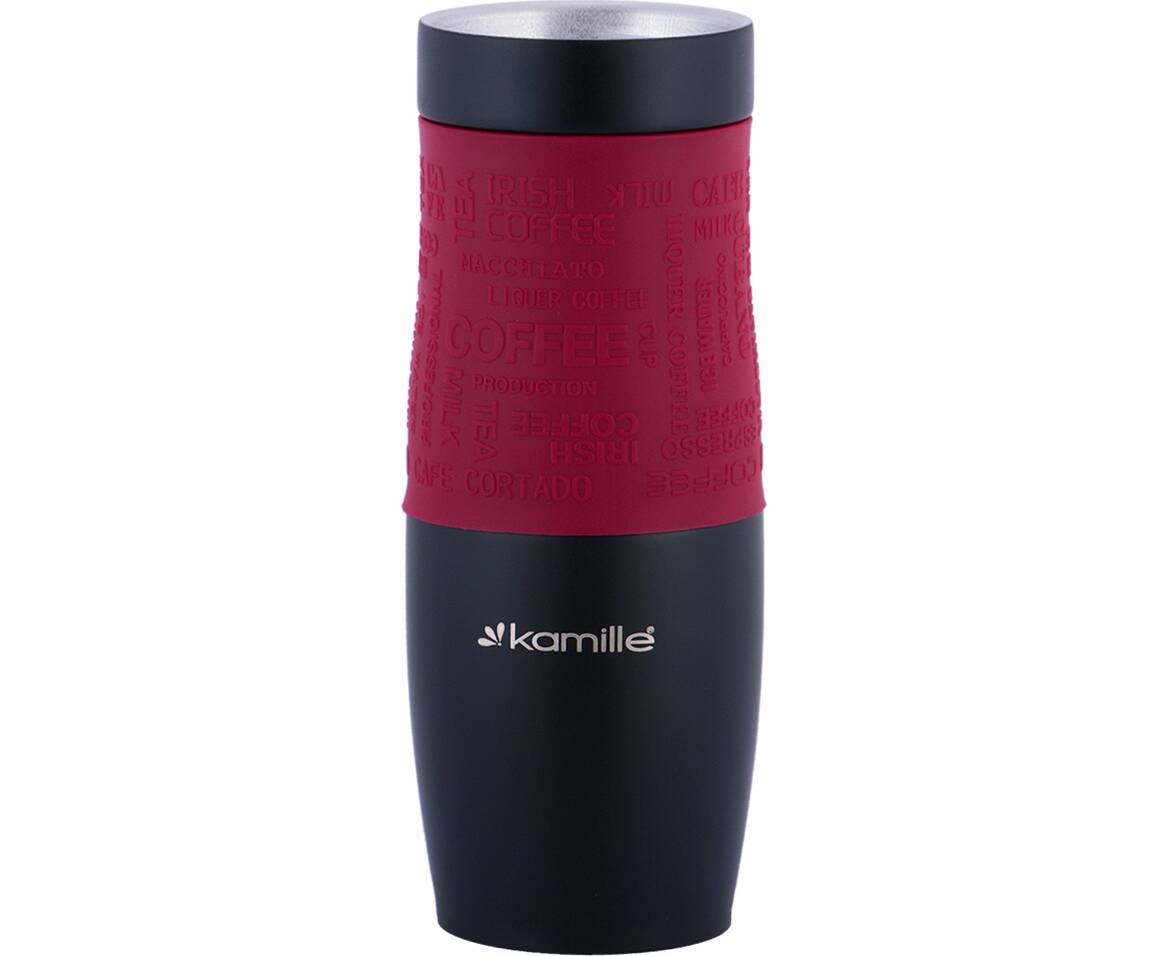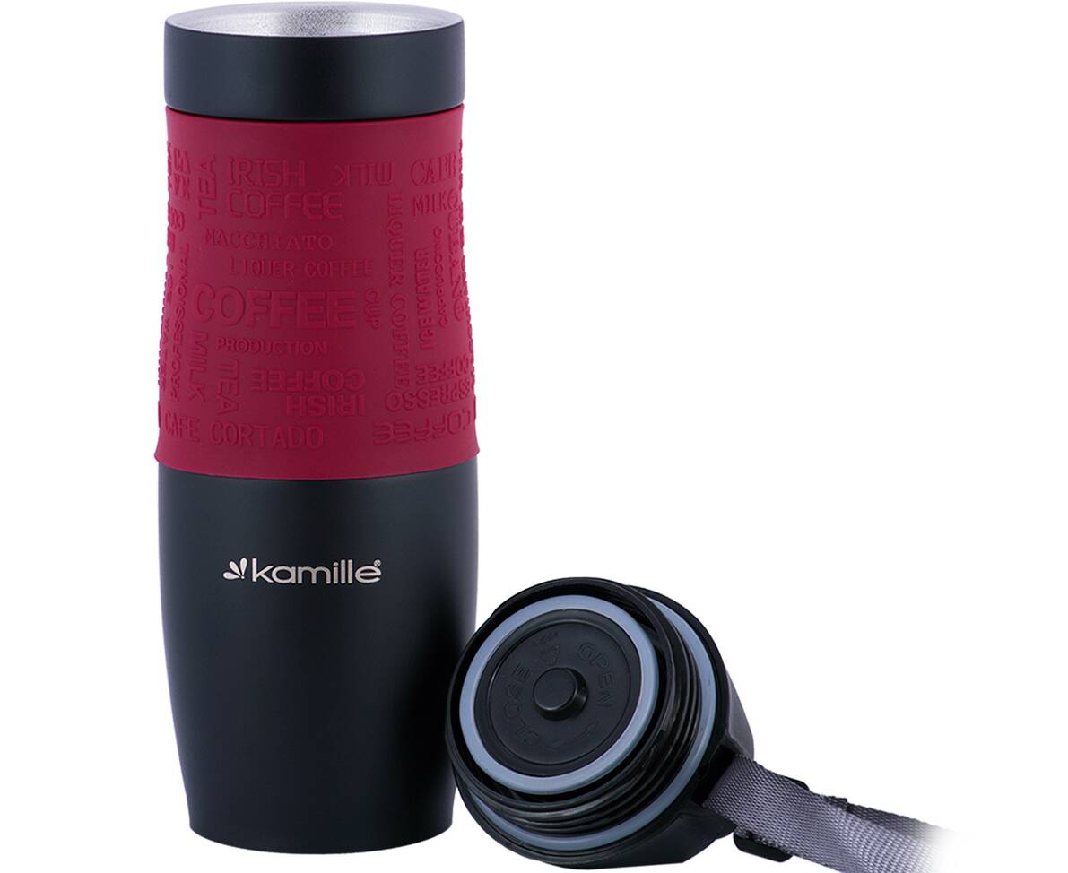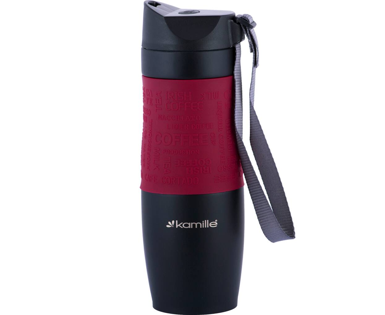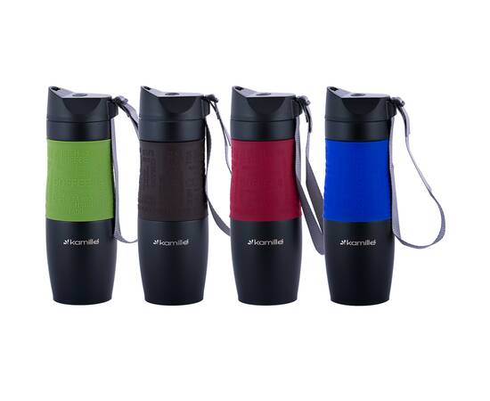 Термокружка 480 мл с TPR-вставкой и ремешком Kamille (2067)